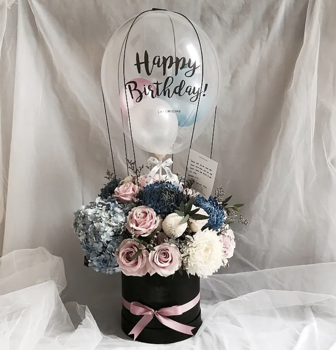This hot air balloon flower box comes in a 15 cm diameter round box.