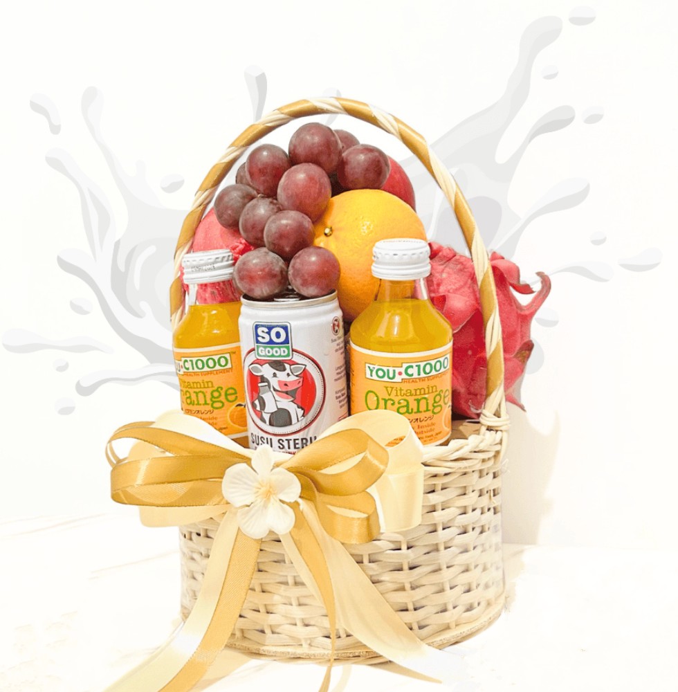 Send a heartfelt surprise across the miles with this refreshing fruit hamper, thoughtfully curated to brighten your loved one’s day in Indonesia. Featuring dragon fruit, sweet grapes, juicy Wokam orange, crisp Century pear, and Fuji apple, paired with nourishing milk and You C 1000—each box is a perfect blend of care, freshness, and love delivered straight to their doorstep.