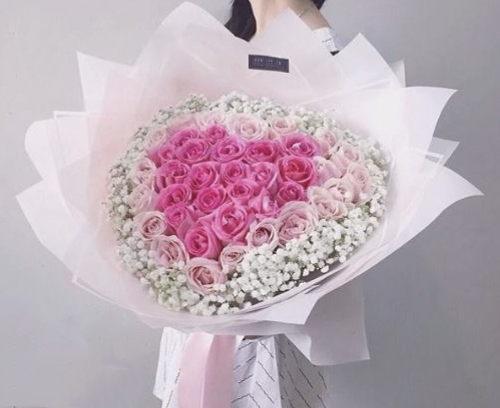 60 roses in a perfect heart-shaped bouquet.